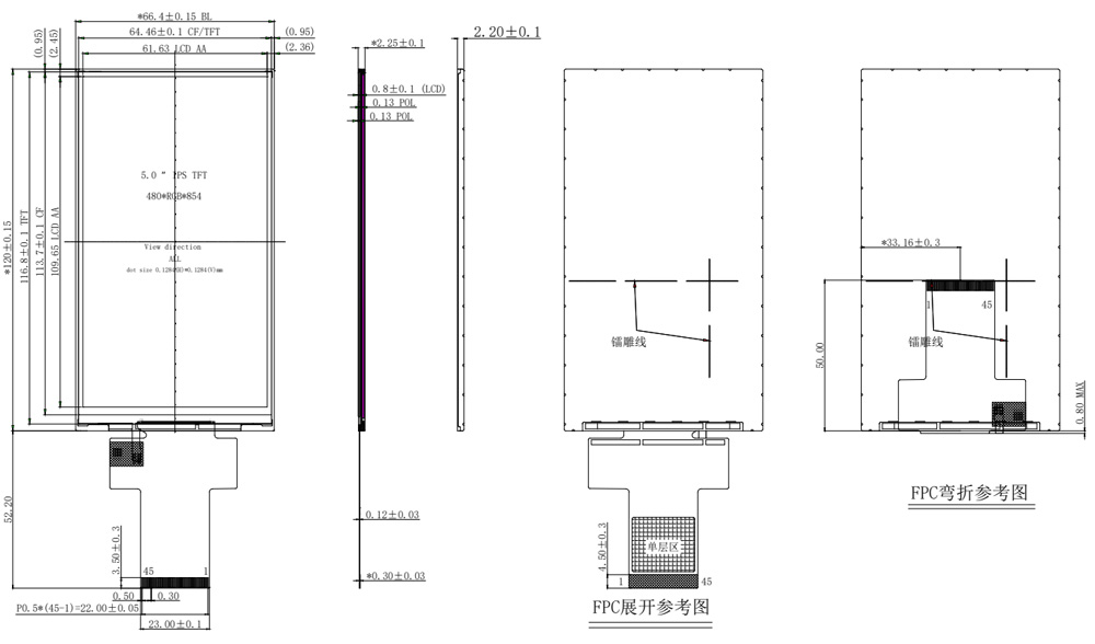 Per gli ingegneri che progettano spesso hardware, uno schermo orizzontale da 5 pollici con risoluzione 800*480 e interfaccia RGB è abbastanza comune. Oggi, il signor Huang, l'ingegnere direttore della Shenzhen Hongjia Technology, introdurrà aSchermo verticale da 5 pollicicon una risoluzione 480*854. Questo schermo presenta una cornice stretta e un rapporto di aspetto 16:9, che lo rende adatto a macchine che richiedono cornici strette. Migliora l'estetica della macchina del cliente, evitando che le cornici appaiano troppo larghe. Supportando le interfacce RGB e MIPI, utilizza il maturo IC ILI9806E, che offre eccellenti prestazioni antistatiche e anti-interferenza, rendendolo adatto all'uso in applicazioni impegnative come apparecchiature industriali, attrezzature militari e droni. Lo schema strutturale è mostrato di seguito. È supportata anche la personalizzazione.