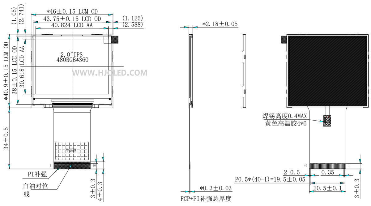 3. Display TFT HD da 2,0 pollici: si tratta di un display orientato al paesaggio con una risoluzione ad alta definizione di 480 × 360 pixel. Utilizza il driver IC ST7701S e un'interfaccia RGB. Quando si progetta la scheda madre, è essenziale verificare che la CPU host supporti display ad alta risoluzione e l'interfaccia RGB per evitare scenari in cui la CPU non ha la capacità di gestire il display in modo efficace. La configurazione orizzontale 480×360 ha proporzioni 4:3; pertanto, la direzione di scansione deve essere configurata correttamente durante l'inizializzazione del software (tipicamente tramite i bit MV/MX/MY del comando 0x36) per evitare che l'immagine visualizzata venga ruotata di 90 gradi.